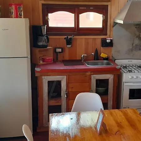 Cabanas Merak - Gualeguaychu includes a fully equipped kitchen with a microwave oven and a fridge.